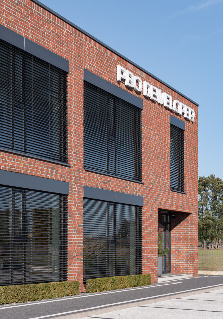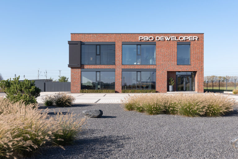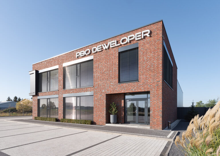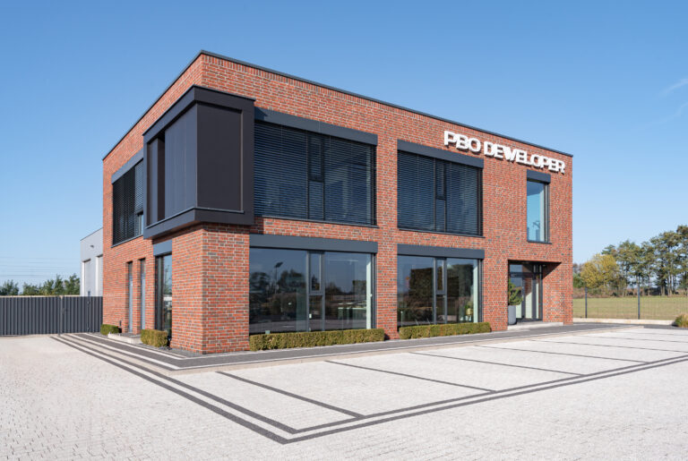Siedziba firmy PBO DEWELOPER mieści się w Klonówcu. Na przestronnej działce zaprojektowano nowoczesny budynek, który mieści zarówno część biurową, jak i zaplecze magazynowe. Obiekt o prostej bryle na rzucie prostokąta charakteryzuje się ponadczasową elewacją z cegły oraz dużymi przeszkleniami, zapewniającymi dobre doświetlenie gabinetów. Otoczony jest starannie wypielęgnowanymi terenami zielonymi.
