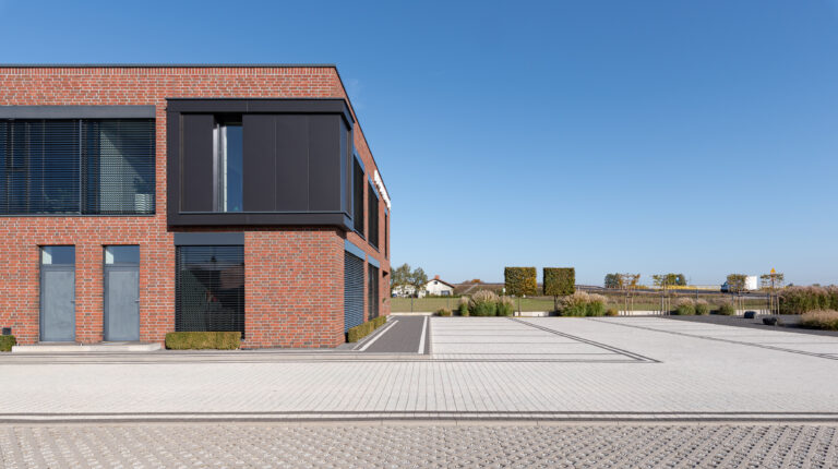 Za dużymi, przeszklonymi drzwiami znajduje się część biurowa budynku, na którą składają się: salon sprzedaży, przytulne gabinety, klimatyzowane biura oraz zaplecze socjalne. Na etapie projektowania architekci zadbali, aby powstający projekt był niepowtarzalny,wyróżniał się maksymalną funkcjonalnością i zapewniał wysoki komfort pracy.