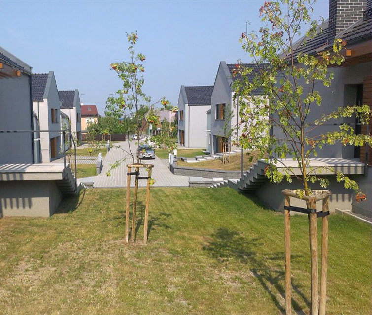 Osiedle Zielony Zakątek składa się z 6 dwulokalowych budynków mieszkalnych. Dwukondygnacyjne mieszkania o powierzchni 128-151 m²obejmują przestronny parter, użytkowe poddasze oraz garaż wkomponowany w bryłę budynku. Do każdego z lokali przynależna jest działka o powierzchni 236-404 m².