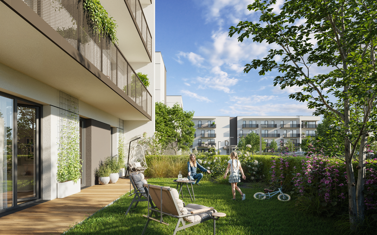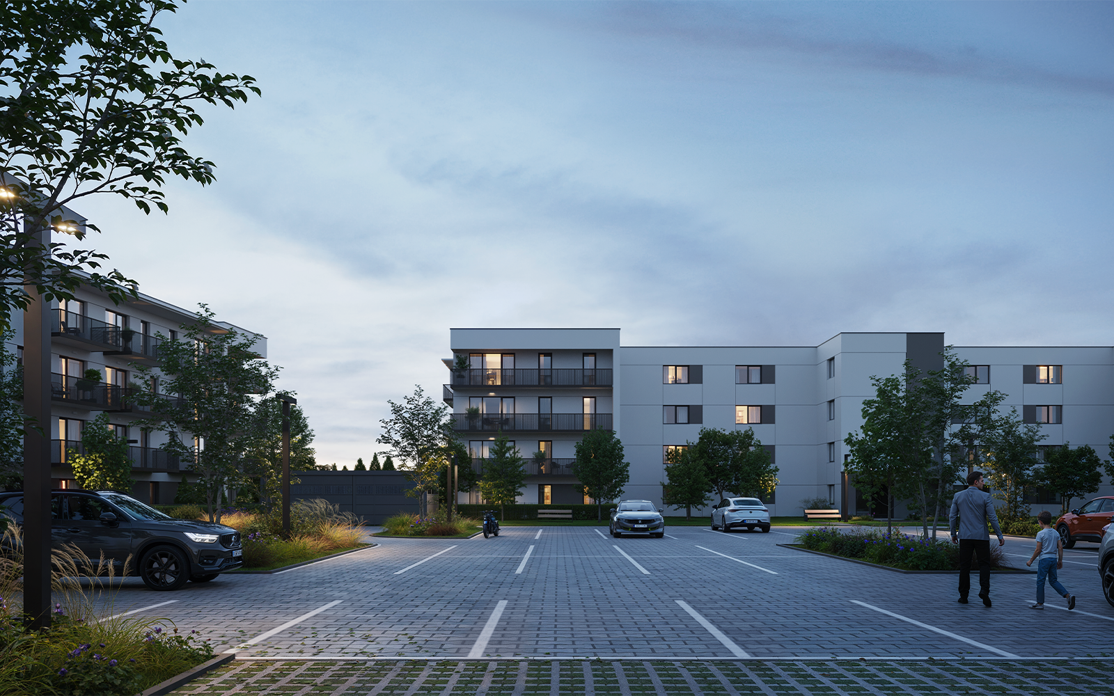 Każde mieszkanie ma balkon, loggię lub duży ogród na parterze, zapewniając Ci dodatkowe miejsce do relaksu na świeżym powietrzu. Poranna kawa z widokiem, chwila oddechu po pracy czy letnie wieczory na własnym tarasie – tutaj to standard. Ponadto naziemne miejsca postojowe na monitorowanym terenie inwestycji gwarantują wygodne parkowanie, a cichobieżne windy sprawiają, że poruszanie się po budynkach jest jeszcze bardziej komfortowe.