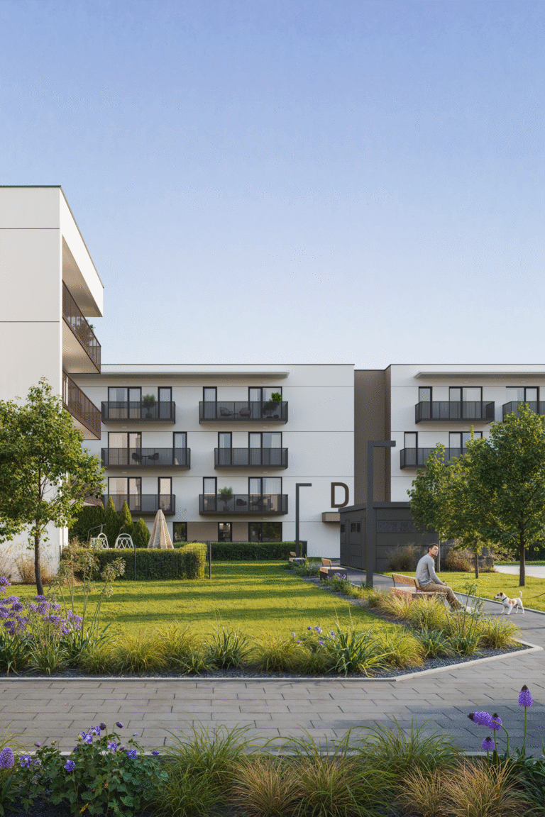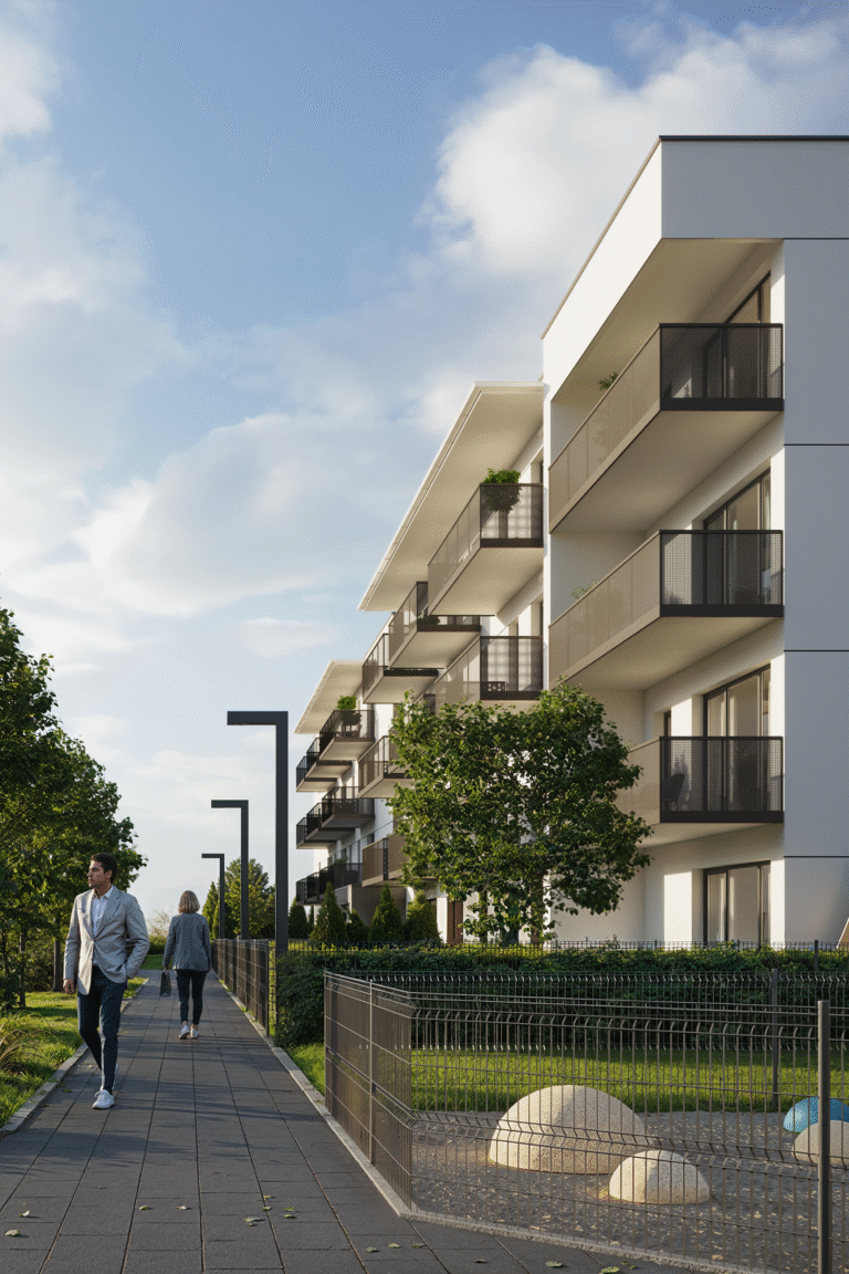 Każde mieszkanie ma balkon, loggię lub duży ogród na parterze, zapewniając Ci dodatkowe miejsce do relaksu na świeżym powietrzu. Poranna kawa z widokiem, chwila oddechu po pracy czy letnie wieczory na własnym tarasie – tutaj to standard. Ponadto naziemne miejsca postojowe na monitorowanym terenie inwestycji gwarantują wygodne parkowanie, a cichobieżne windy sprawiają, że poruszanie się po budynkach jest jeszcze bardziej komfortowe.